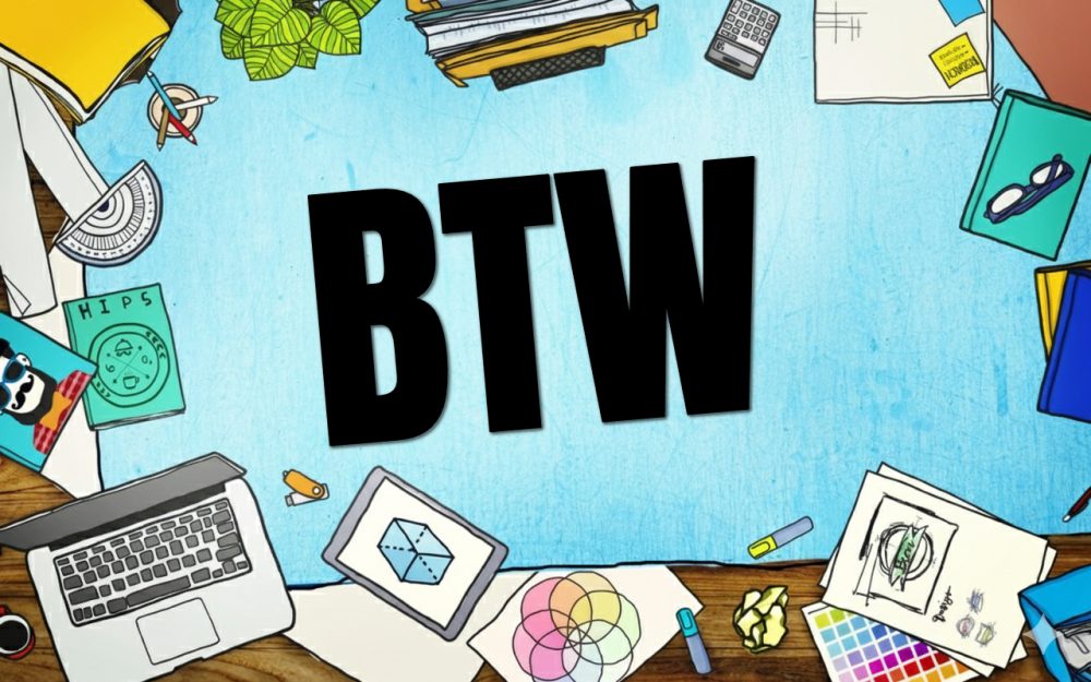 Zkratka „btw“ znamená „by the way“ a v češtině odpovídá výrazu „mimochodem“. Stručně řečeno: používá se pro nenápadné doplnění informace bokem.